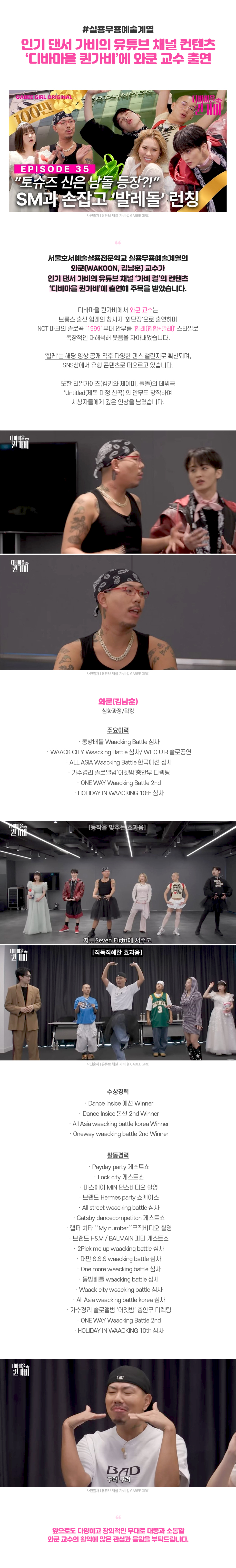 실용무용예술계열 유튜브 채널 가비 걸의 ‘디바마을 퀸가비’에 와쿤 교수 출연