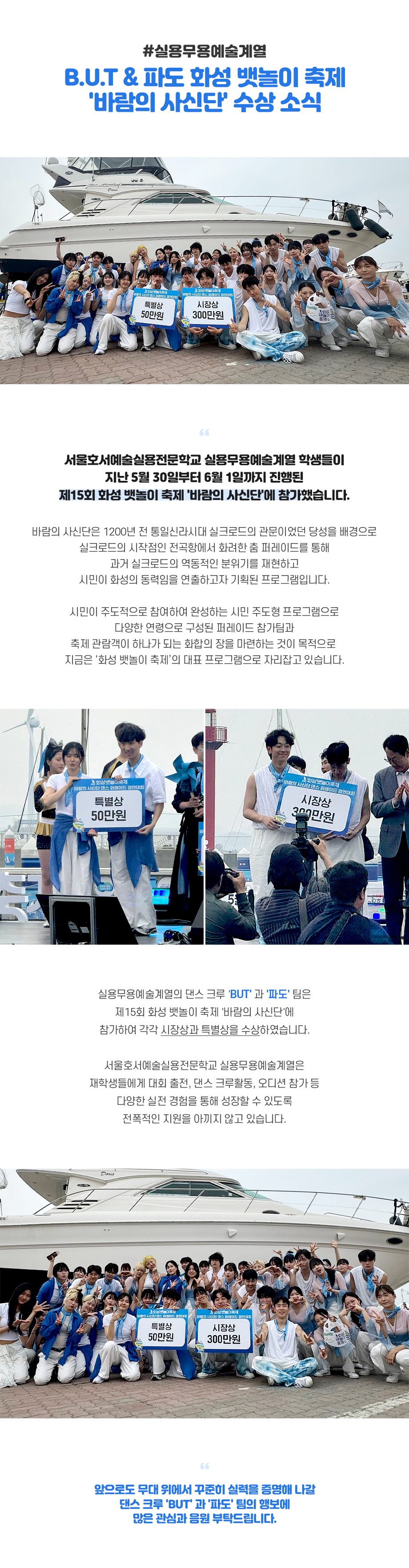실용무용예술계열 B.U.T & 파도 화성 뱃놀이 축제 '바람의 사신단' 수상 소식