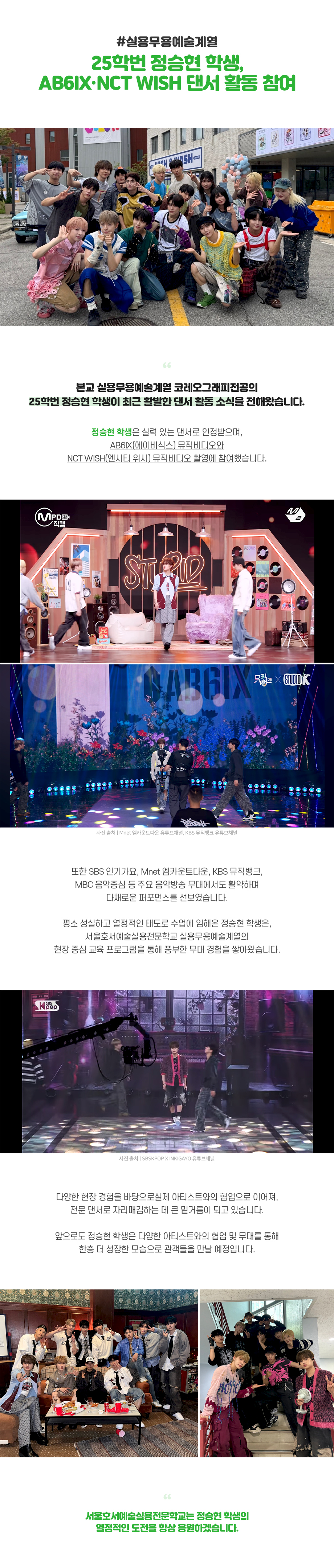 실용무용예술계열 25학번 정승현, AB6IX·NCT WISH 댄서 활동 참여