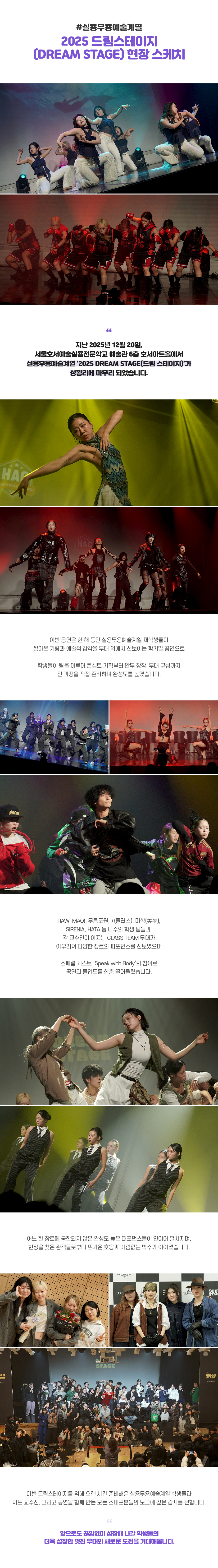 지난 2025년 12월 20일, 서울호서예술실용전문학교 예술관 6층 호서아트홀에서 실용무용예술계열 '2025 DREAM STAGE(드림 스테이지)’가 성황리에 마무리 되었습니다.