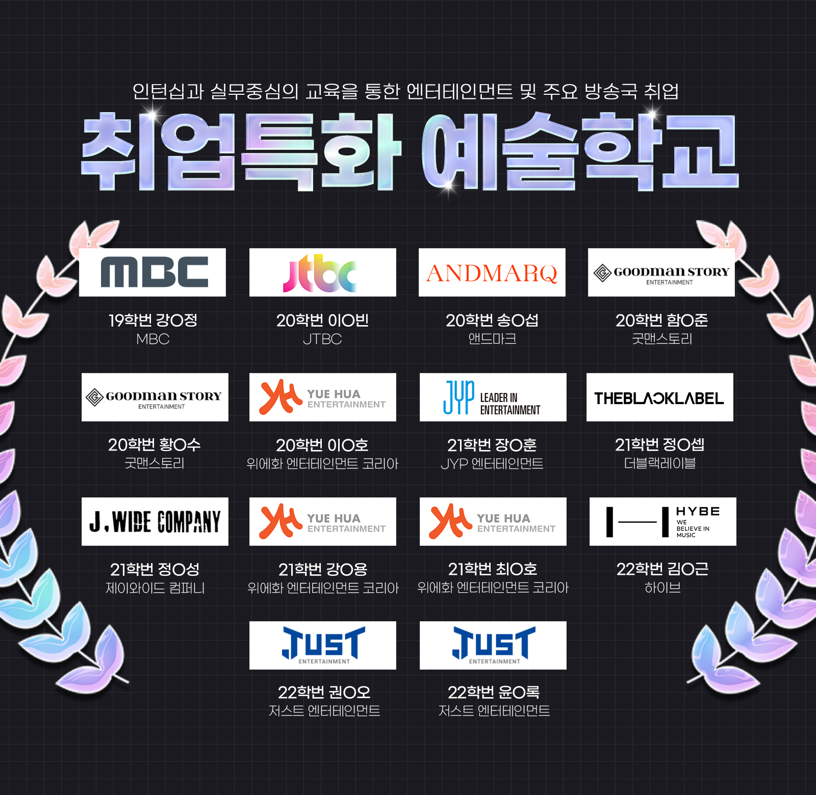 엔터테인먼트계열 학생들의 진출현황을 확인해보세요