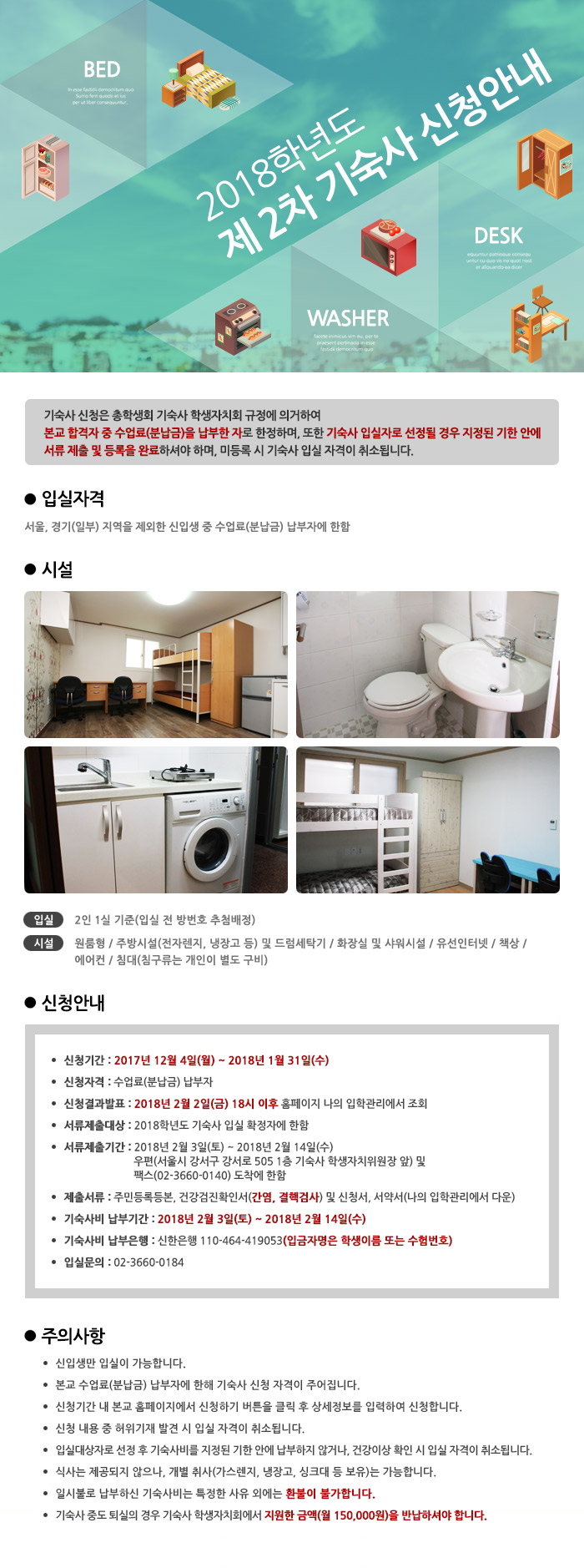 2018학년도 기숙사 2차 신청 안내