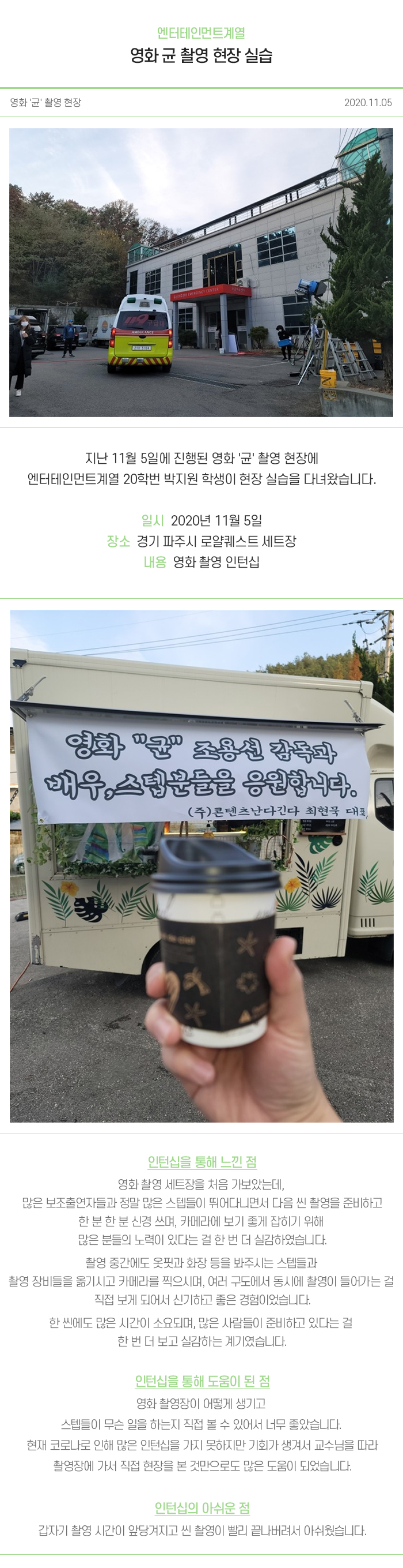 엔터테인먼트계열 영화 균 촬영 현장 실습