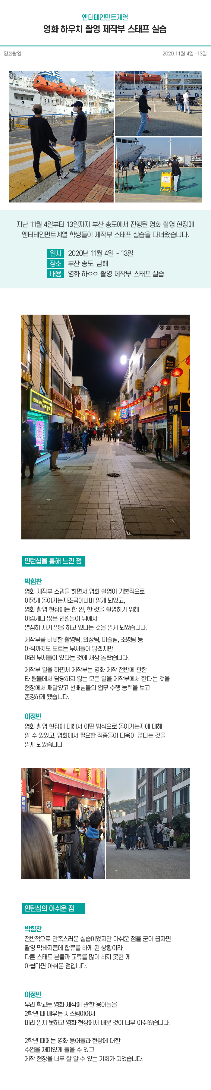 엔터테인먼트계열 영화 하우치 촬영 제작부 스태프 실습