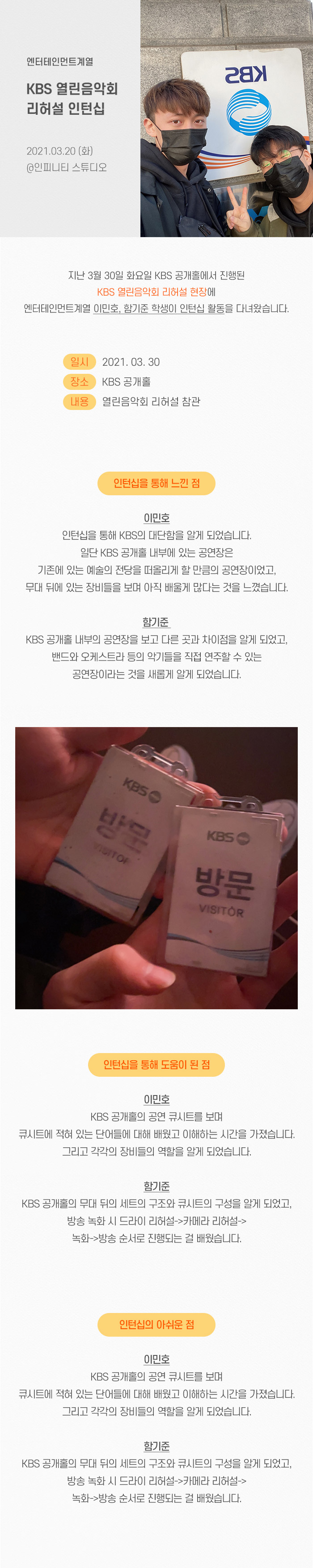 엔터테인먼트계열 KBS 열린음악회 리허설 인턴십