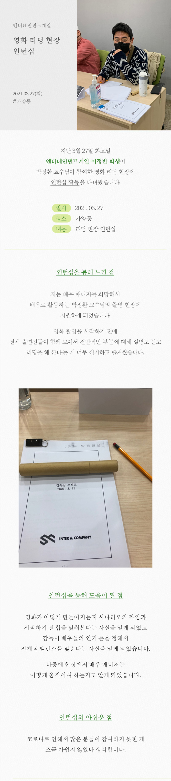 엔터테인먼트계열 영화 리딩 현장 인턴십