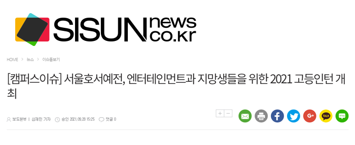 [언론보도]엔터테인먼트과 지망생들을 위한 2021 고등인턴 개최