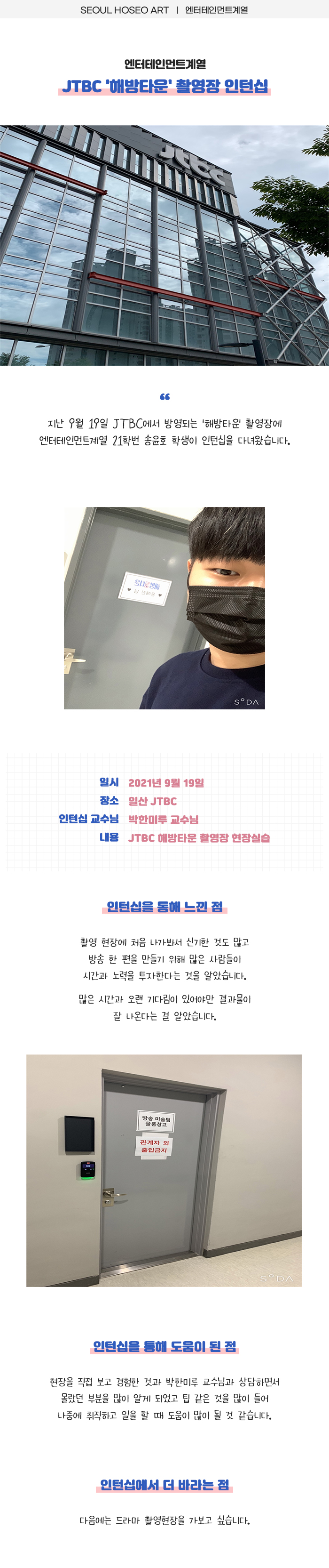 엔터테인먼트계열 JTBC '해방타운' 촬영장 인턴십