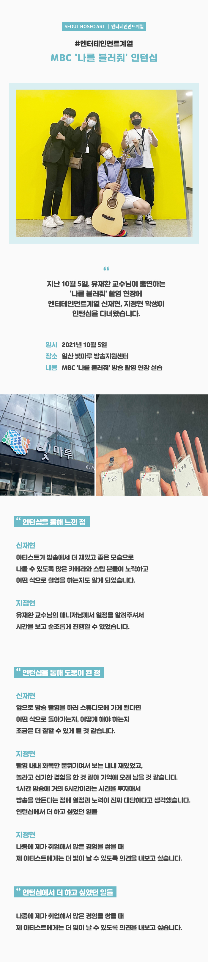 엔터테인먼트계열 MBC '나를 불러줘' 인턴십