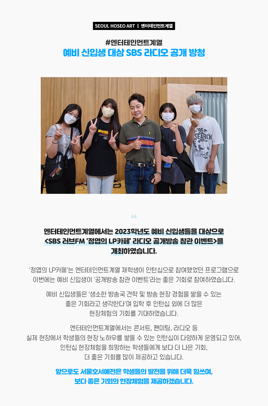 엔터테인먼트계열 예비 신입생 대상 SBS 라디오 공개 방청