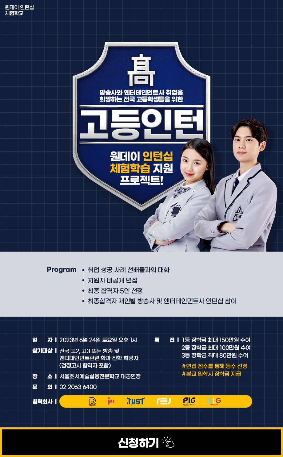 서울호서예술실용전문학교 엔터테인먼트계열 2023 고등인턴 원데이 인턴십 체험학습 지원 프로젝트 신청하기