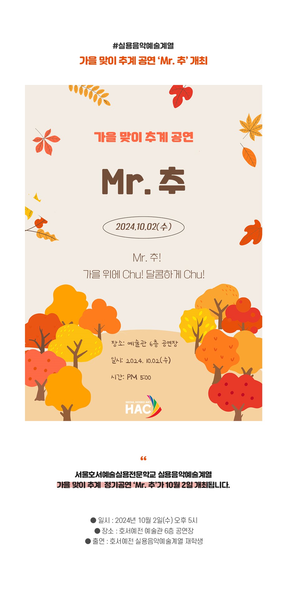실용음악예술계열 추계 공연 'Mr. 추' 개최