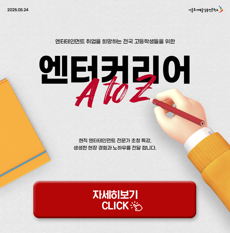 서울호서예술실용전문학교 엔터테인먼트계열 엔터테인먼트 취업을 희망하는 전국 고등학생들을 위한 엔터커리어 A to Z 신청하기