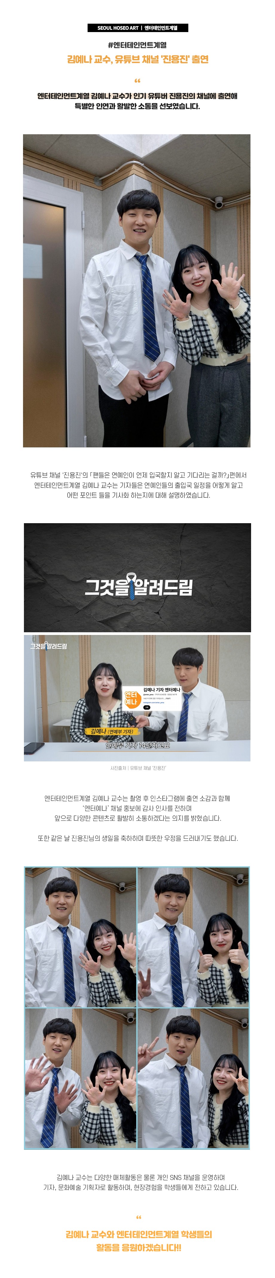 엔터테인먼트계열 김예나 교수가 인기 유튜버 진용진의 채널에 출연해