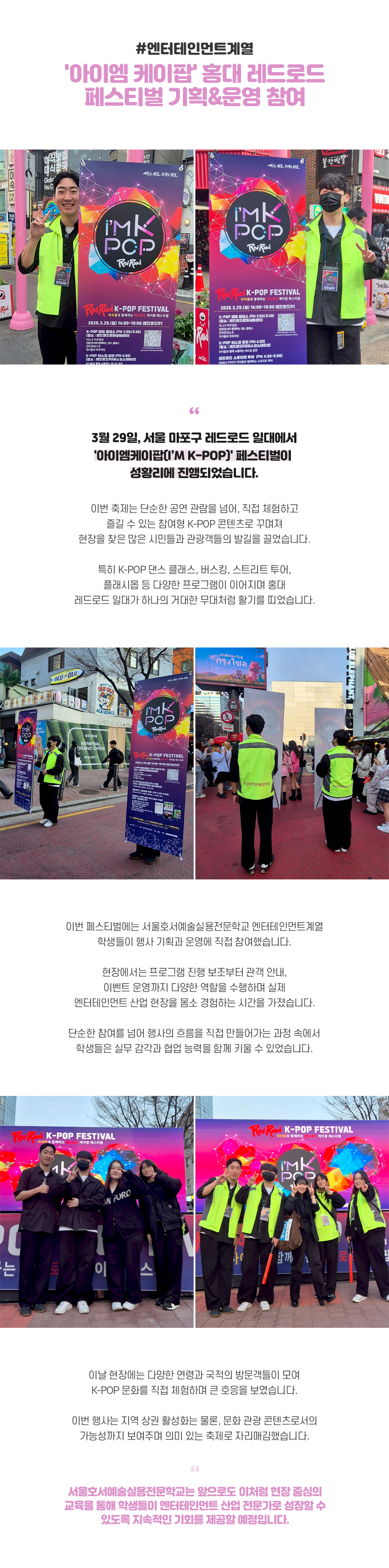 엔터테인먼트계열 '아이엠 케이팝' 홍대 레드로드 페스티벌 기획&운영 참여