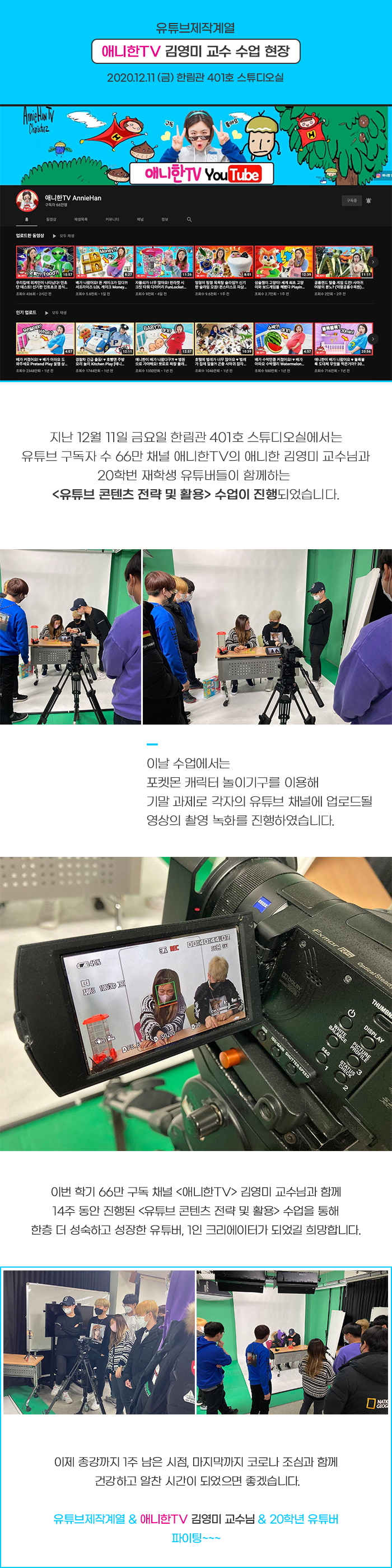 유튜브제작계열 애니한TV 김영미 교수 수업 현장