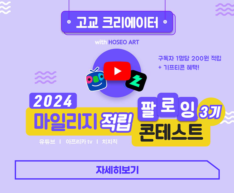 서울호서예술실용전문학교 유튜브제작계열 2024 고교 크리에이터 마일리지 적립 팔로잉 콘테스트 신청하기