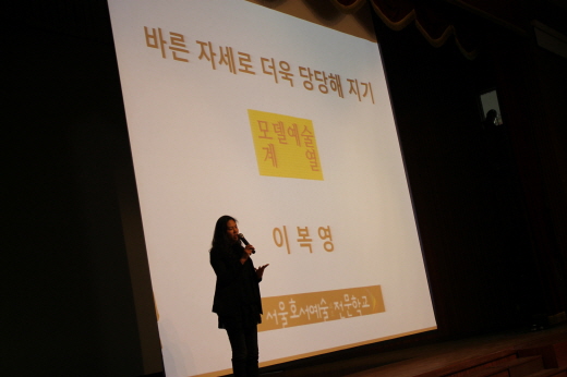 모델예술계열에서는 학부장인 이복영 교수가 직접 특강을 진행, 체형별 패션 스타일링 비법과 모델이란 직업에 관련해서 상세하게 소개하고, 진출 방법 등 관련 노하우를 알려주는 특별한 시간을 가졌다.