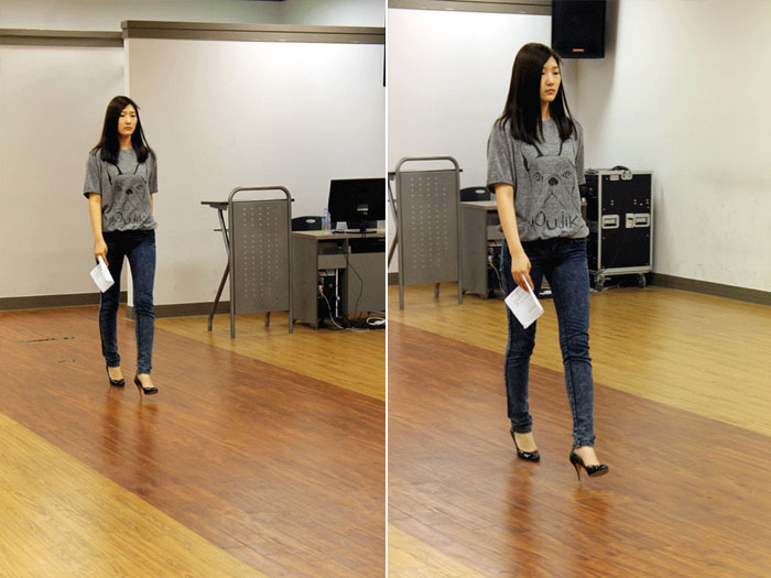 그 다음 여학생의 면접대비 모습이예요~ 먼저 당당한 워킹으로 자신을 어필하는 모습!