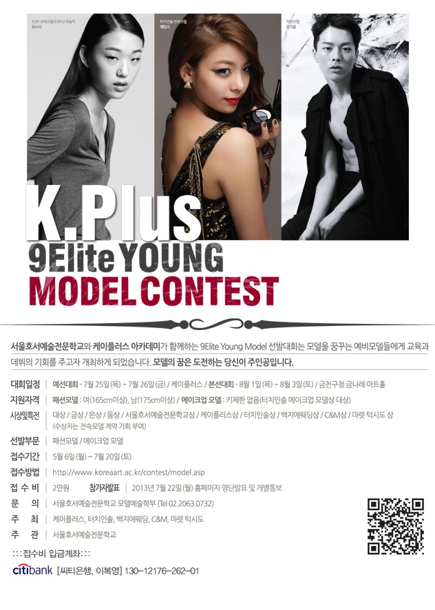 K.Plus 9Elite YOUNG MODEL CONTEST 대회는 본교 주관으로 실시되는 모델대회예요~