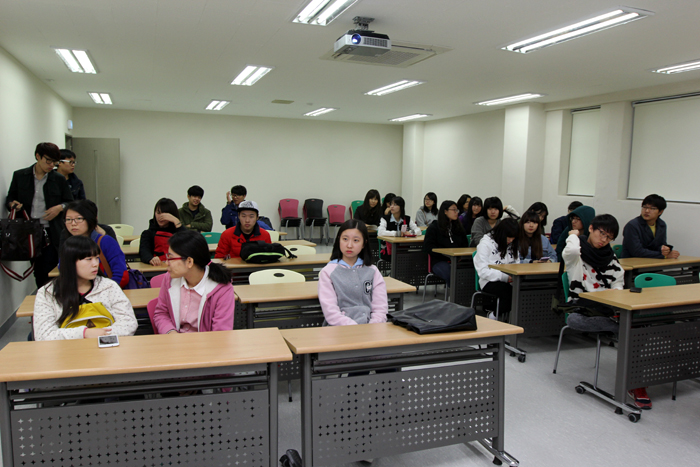 이 날 일일체험학교를 참여하는 학생들이 신관 2층의 강의실에 모여들었는데요.