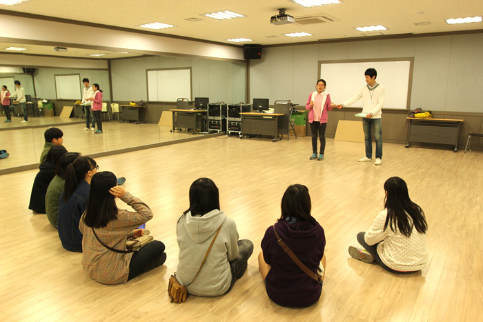 지도 선생님께서 간단히 학교에 대해 소개한 후 본격적인 일일체험학교를 위해 각자 원하는 학부로 자리를 이동하였습니다.