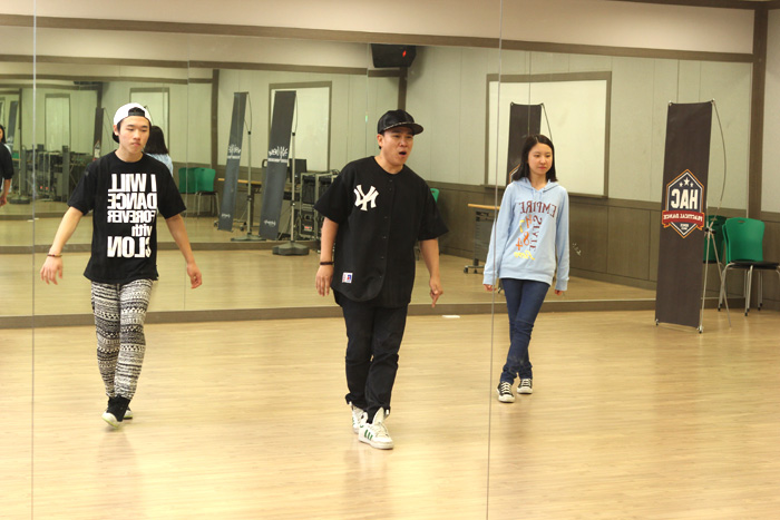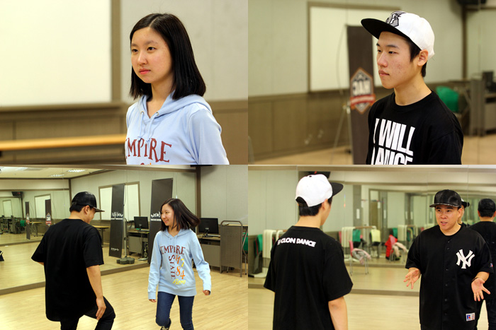 실용무용예술학부는 남학생과 여학생이 짝을 이뤄 스탭연습부터 시작했습니다.