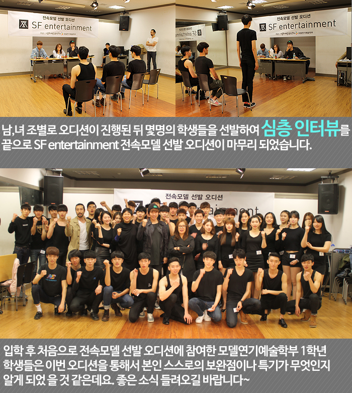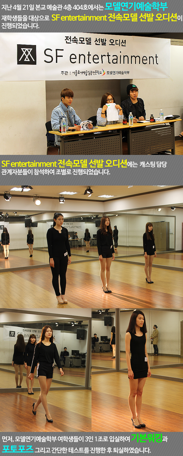 SF entertainment 전속모델 선발 오디션이 지난 4월 22일 본교 예술관 404호 모델 스튜디오에서 진행되었습니다.