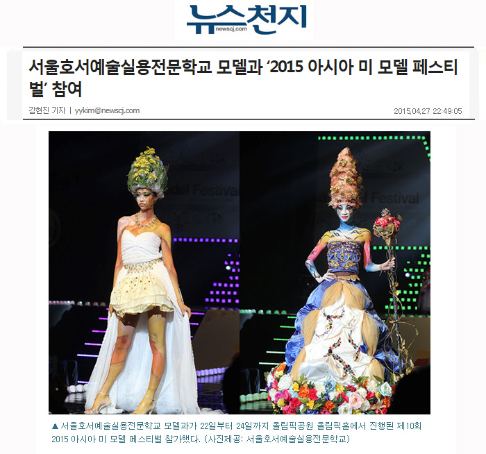또한 서울호서예술실용전문학교 모델과는 ‘2015 아시아 모델 페스티벌’에서 진행된 아시아 미 페스티벌 축제에 참가하기도 했다.