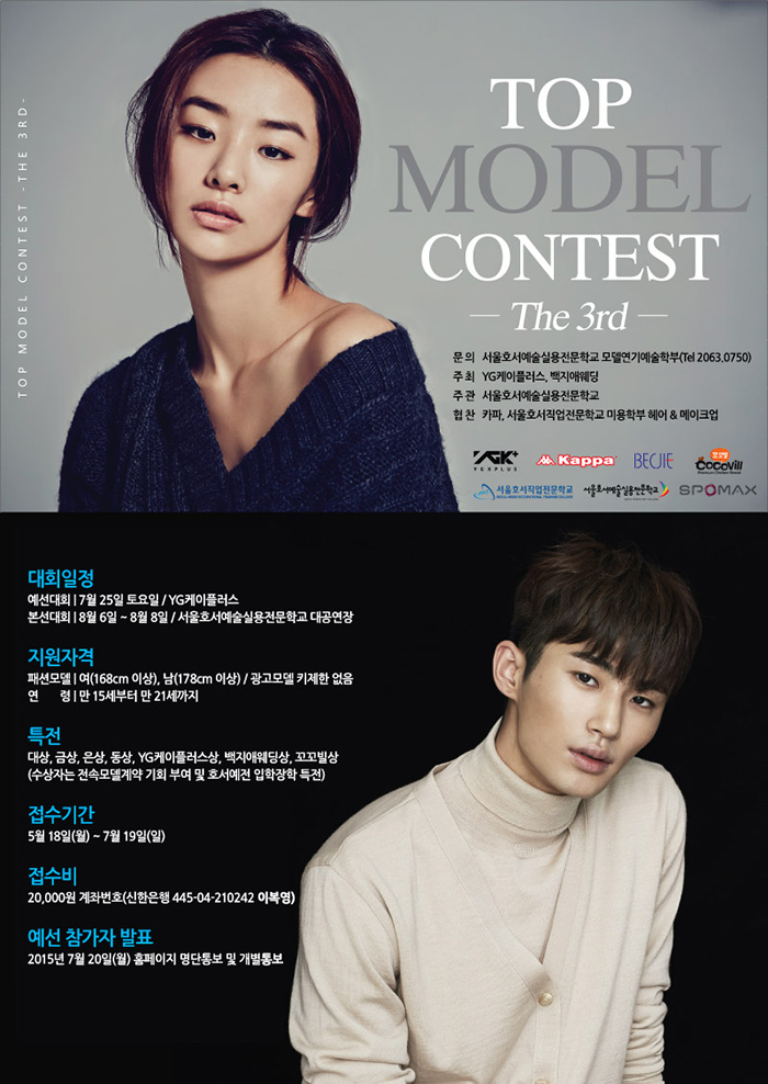 본교 모델연기예술학부와 YG케이플러스에서 탑 모델 콘테스트를 개최합니다.