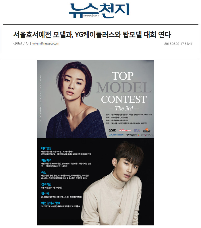 [뉴스천지]모델과, YG케이플러스와 탑모델 대회 연다
