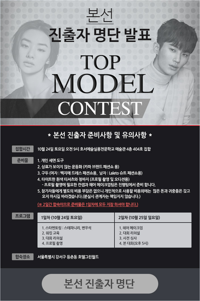 제3회 탑모델콘테스트 본선 명단 발표