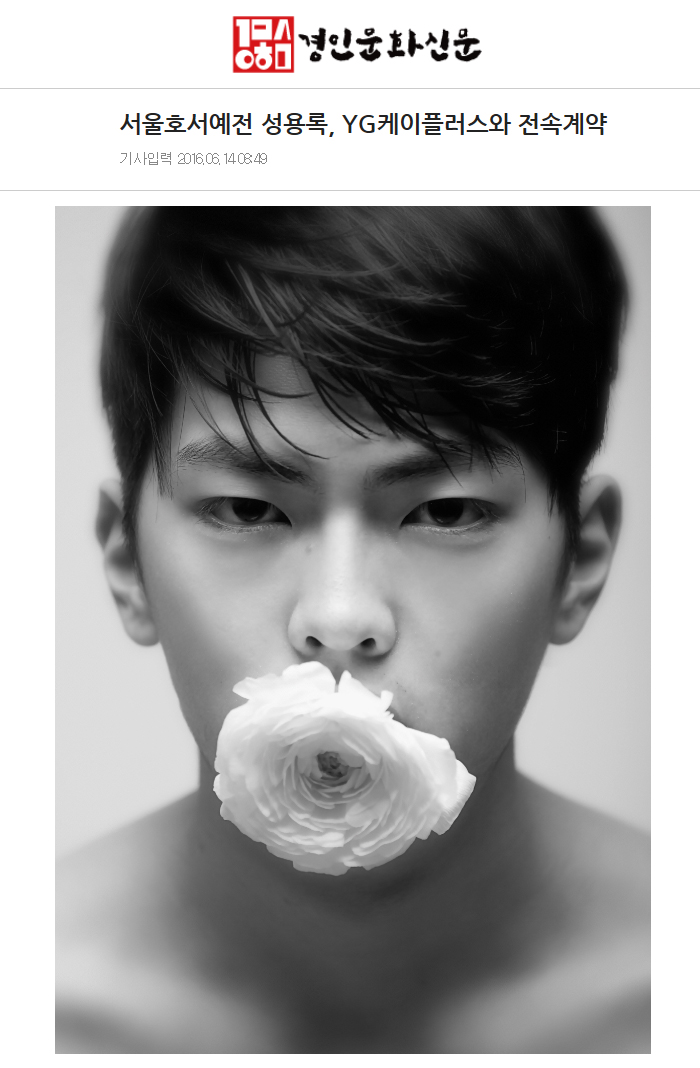 서울호서예술실용전문학교(이사장 이운희, 이하 서울호서예전) 모델연기예술계열에 15학번으로 재학중인 성용록 학생이 강승현, 스테파니 리, 혜박 등이 소속된 YG케이플러스와 모델 전속계약을 맺었다.