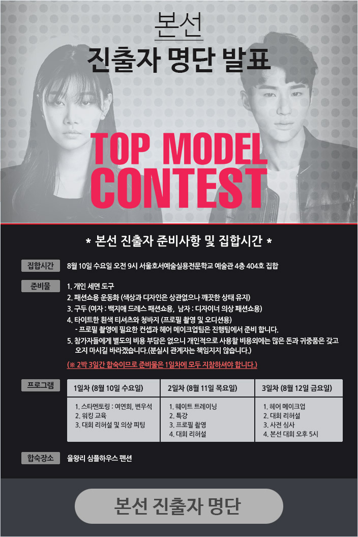 제4회 탑모델콘테스트 본선 진출자 명단 발표
