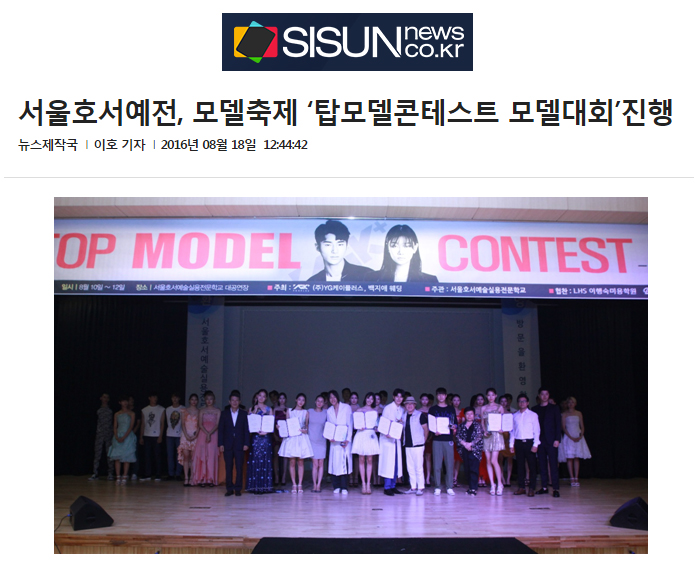 [시선뉴스] 서울호서예술실용전문학교(이하 서울호서예전)가 주관하고, YG케이플러스와 백지애웨딩이 주최, LHS이행숙미용학원, 세인트앤코 등이 후원한 제4회 탑모델콘테스트가 지난 12일 서울호서예전 6층 대공연장에서 성황리에 마무리 되었다.