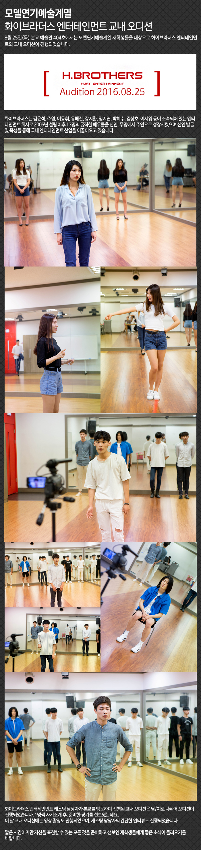 8월 25일(목) 본교 예술관 404호에서는 모델연기예술계열 재학생들을 대상으로 화이브라더스 엔터테인먼트의 교내 오디션이 진행되었습니다.