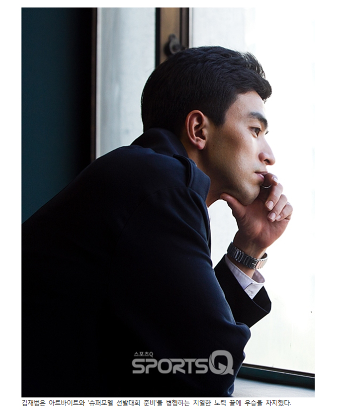 김재범은 2011년 슈퍼모델 선발대회에서 남성모델 최초 우승을 차지했다. 그러나 이러한 영광 뒤에는 뼈를 깎는 노력이 있었다. 준비 과정은 처음부터 난항이었다.