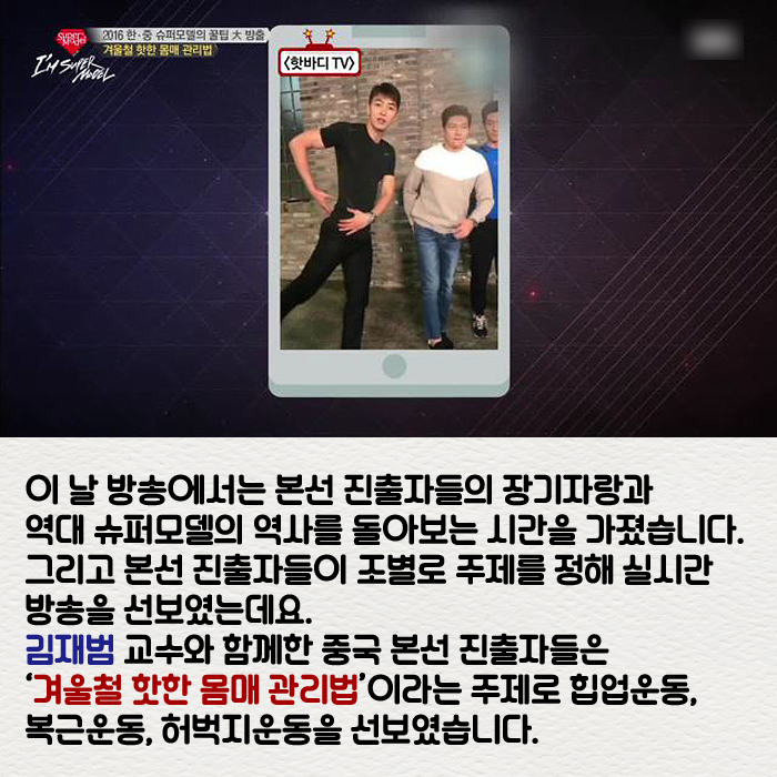 12월 19일(월) 자정에 방송된 2016슈퍼모델 선발대회에서 스폐셜 심사위원으로 역대 출연진들이 출연하였습니다.