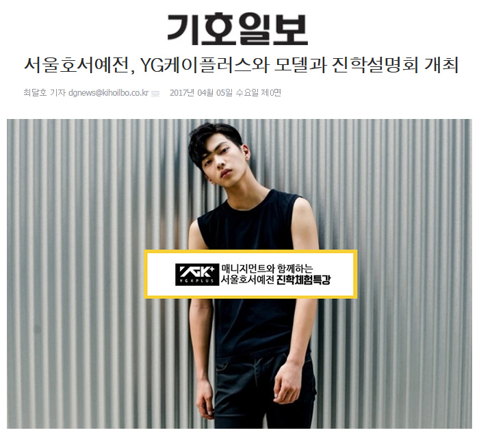 한편 YG케이플러스와 함께하는 모델진학설명회 참석을 희망하는 고2, 고3 및 2018학년도 입시대상자는 서울호서예전 홈페이지에서 신청하면 된다.