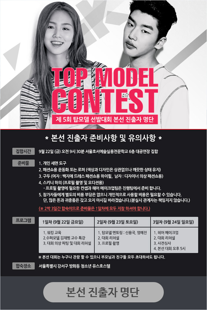 제5회 탑모델콘테스트 본선 진출자 명단 발표