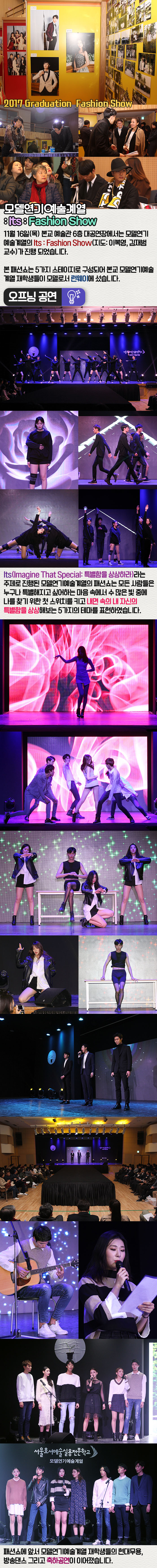 11월 16일(목) 본교 예술관 6층 대공연장에서는 모델연기예술계열의 : Its : Fashion Show가 진행(지도: 이복영, 김재범 교수)되었습니다.