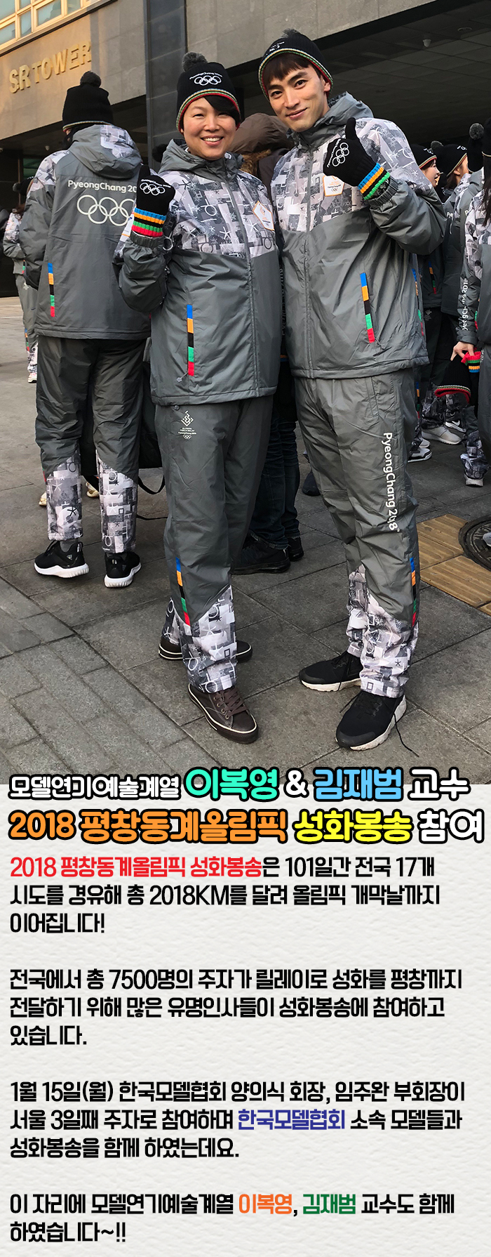 모델연기예술계열 이복영, 김재범 교수가 2018 평창동계올림픽 성화봉송에 참여하였습니다.