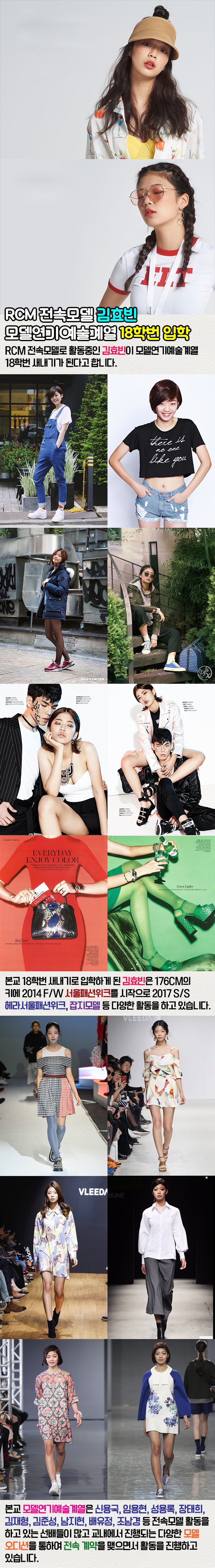 RCM 전속모델로 활동중인 김효빈이 모델연기예술계열 18학번 새내기가 된다고 합니다.