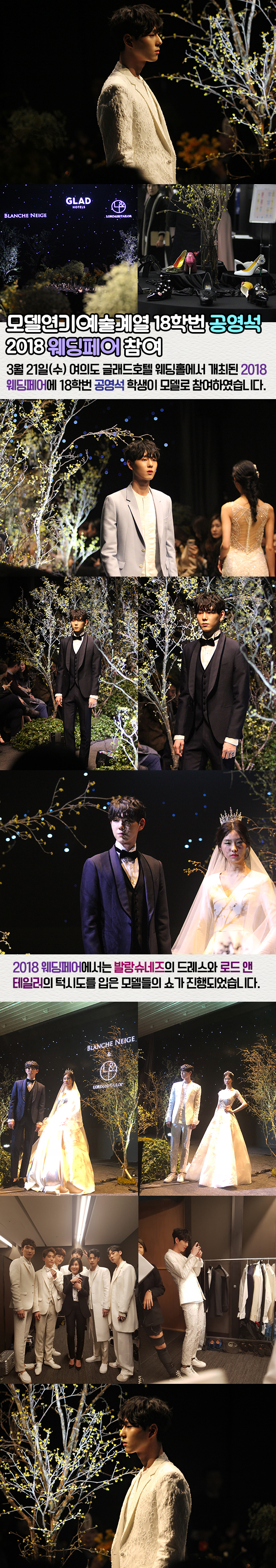 3월 21일(수) 여의도 글래드호텔 웨딩홀에서 개최된 2018 웨딩페어에 18학번 공영석 학생이 모델로 참여하였습니다.