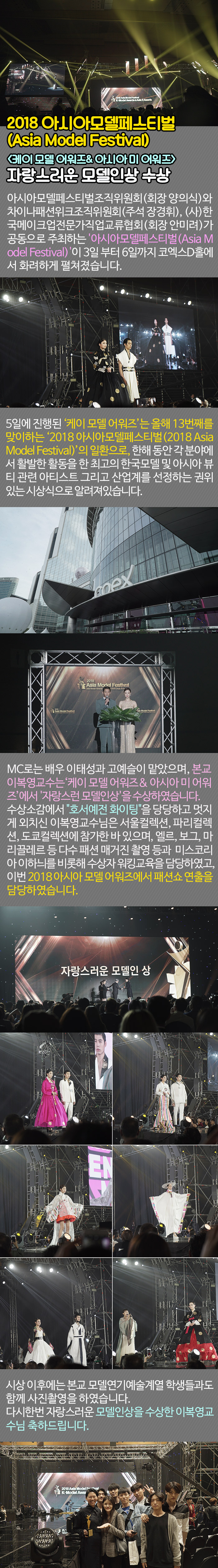 모델연기예술계열 이복영교수님이 <2018 아시아모델어워즈>에서 자랑스러운 모델인상을 수상하였습니다.