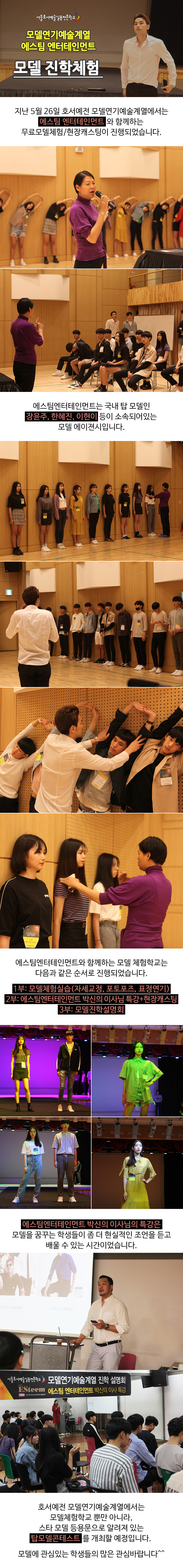 지난 5월 26일 호서예전 모델연기예술계열에서는 에스팀 엔터테인먼트와 함께하는 무료모델체험/현장캐스팅이 진행되었습니다.