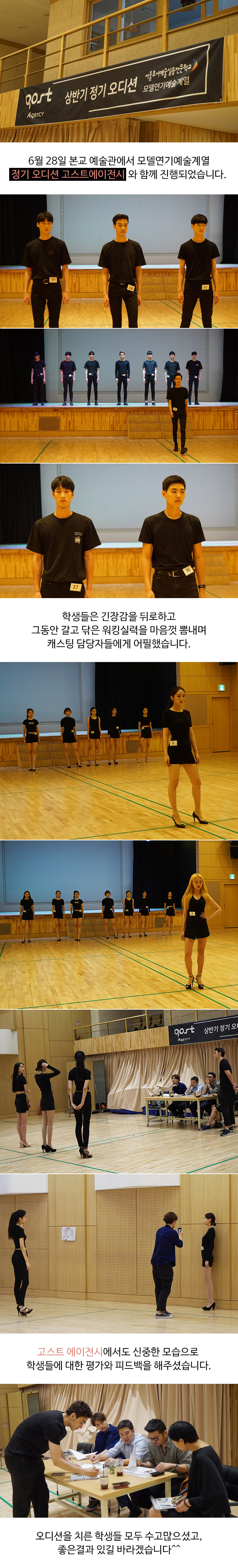 6/28 본교 예술관에서 모델연기예술계열 정기 모델오디션 고스트에이전시와 함께 진행되었습니다.
