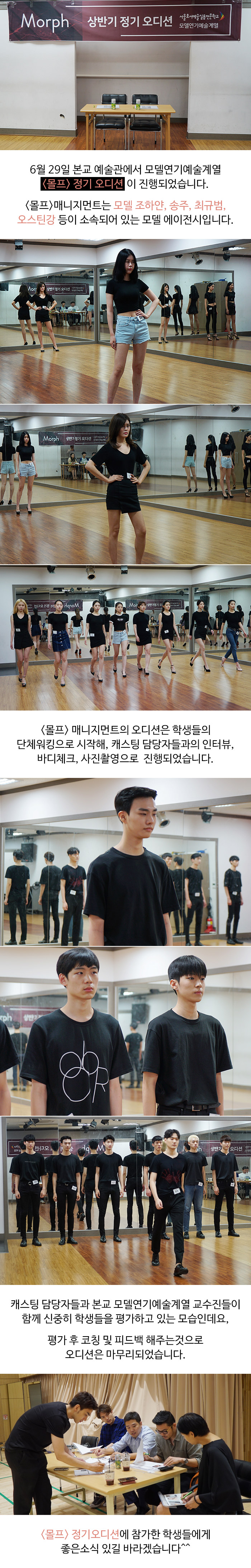 6월 29일 본교 예술관에서는 모델연기예술계열 <몰프> 정기오디션이 진행되었습니다.