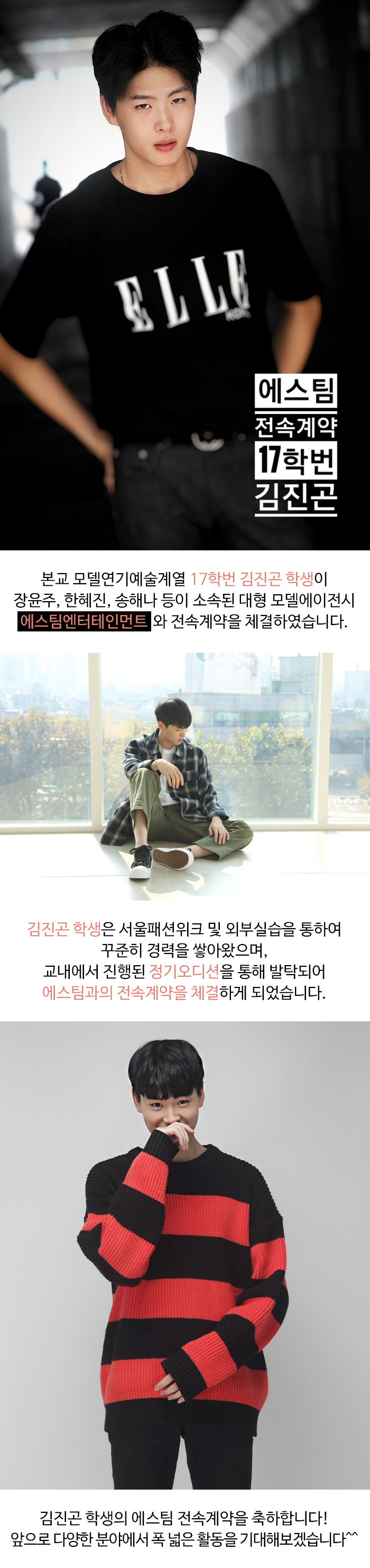 본교 모델연기예술계열 17학번 김진곤학생이 장윤주, 한혜진, 송해나 등이 소속된 대형 모델에이전시