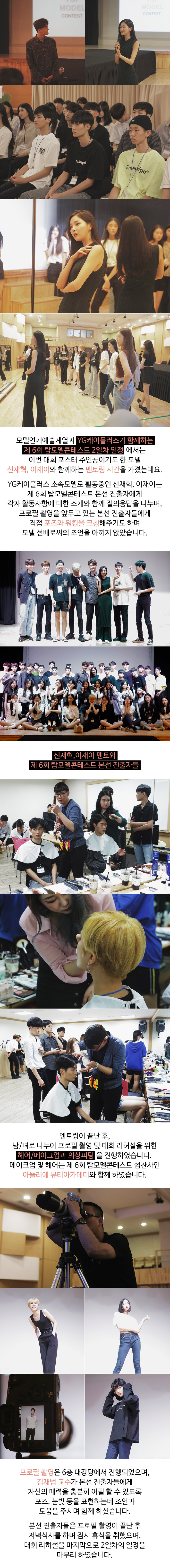 모델연기예술계열과 YG케이플러스가 함께하는 제 6회 탑모델콘테스트 2일차 일정에서는 이번 대회 포스터 주인공이기도 한 모델 신재혁, 이재이와 함께하는 멘토링 시간을 가졌습니다.